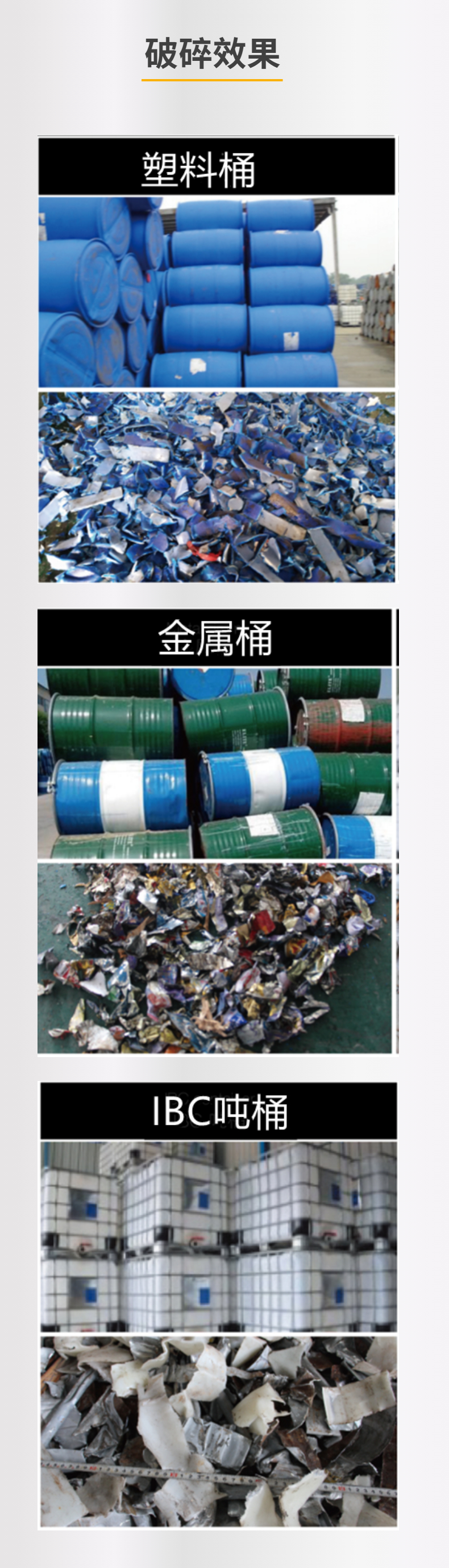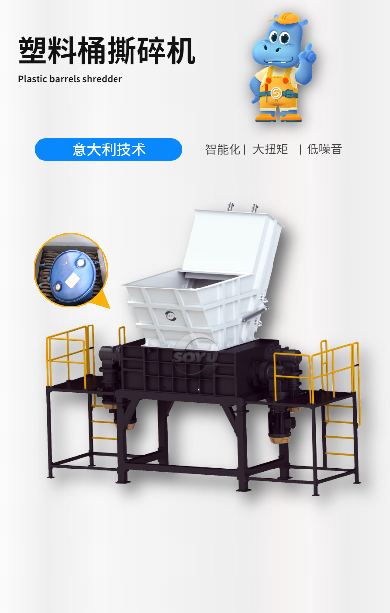 四軸破碎機,破碎塑料桶和鐵桶