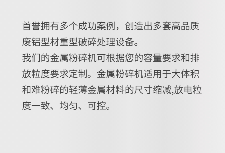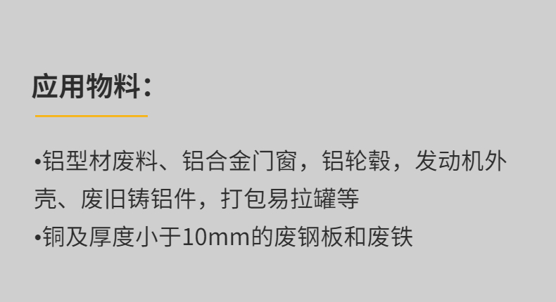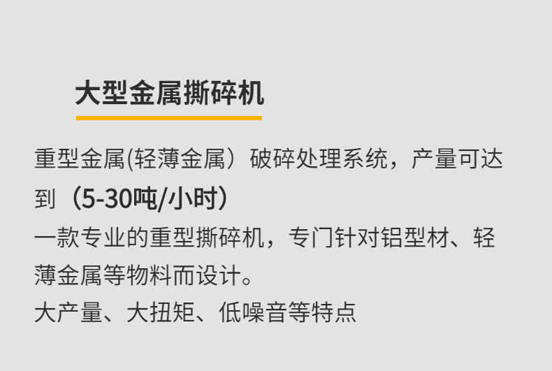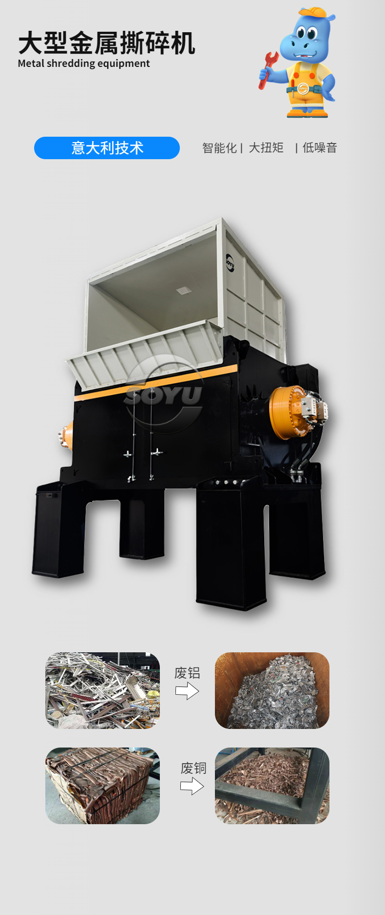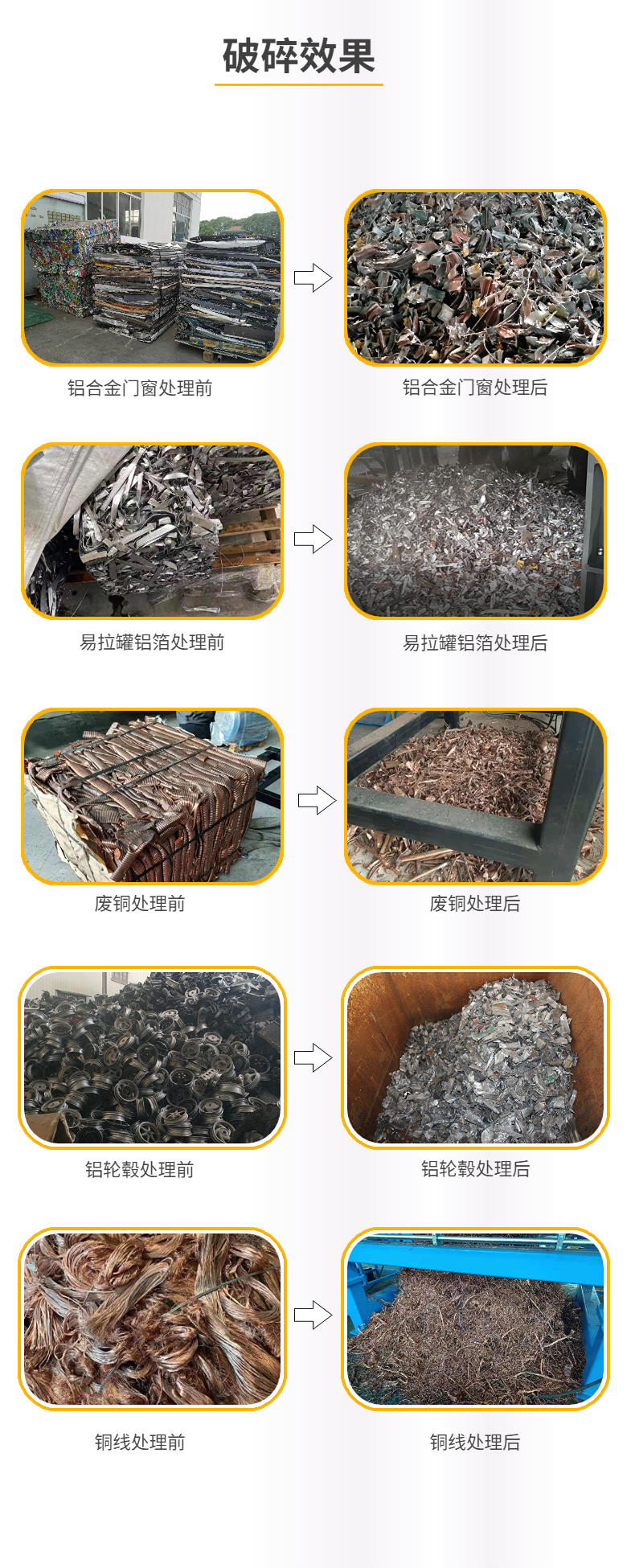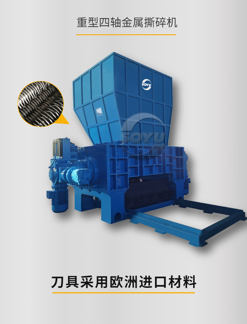 本機(jī)采用行星齒輪減速機(jī)驅(qū)動,刀片采用高強(qiáng)度合金鋼制成,有較強(qiáng)的耐磨性和較高的強(qiáng)度等特點,軸之間差速運轉(zhuǎn),有撕扯、擠壓、咬合等功能。電氣部分采用西門子電氣元件編程控制,具有自動檢測過載保護(hù)等功能。專為破碎各種鋁型材及輕薄金屬物料設(shè)計,適合各種大體積,難破碎的壓塊的或散件的鋁型材物料細(xì)化,具有出料均勻、大小可控等優(yōu)點,適合撕碎的物料有:打包鋁、鋁泊、鋁材、鋁條、輕薄鋼料、輕薄鐵料等各種廢金屬物料。效率高、低轉(zhuǎn)速、大轉(zhuǎn)矩、低噪音
