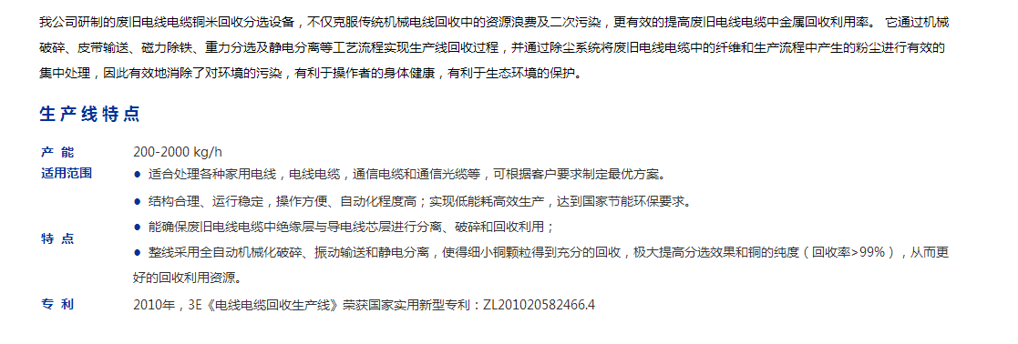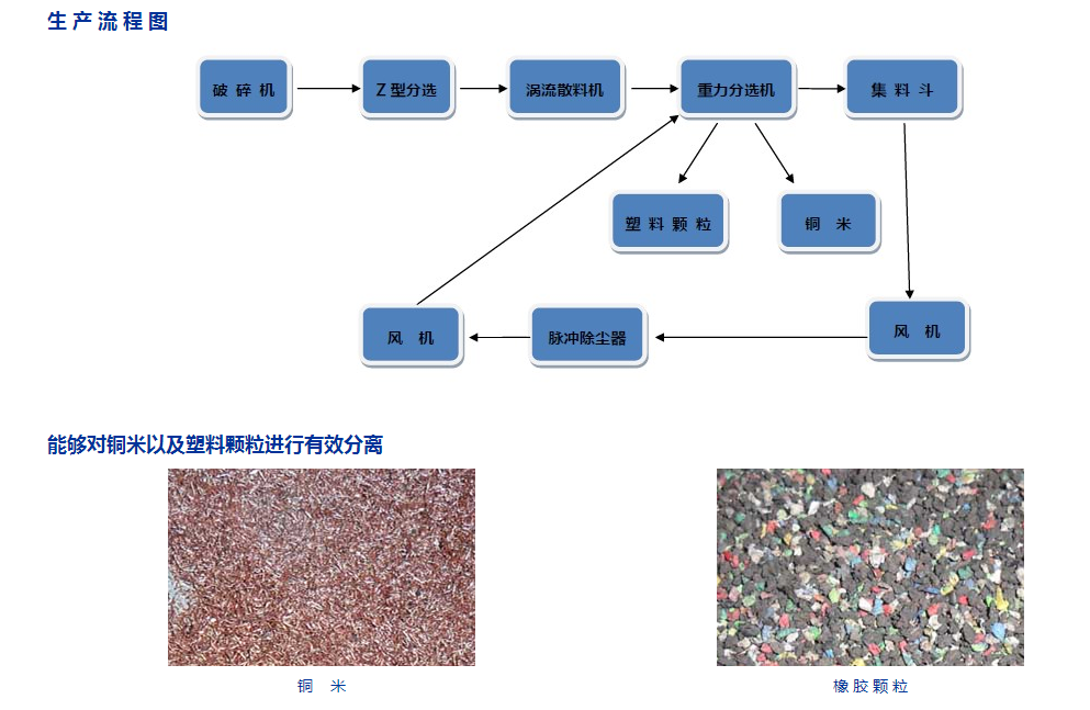 該銅米機是我公司自主研發(fā)的回收線之一,通常用來生產(chǎn)銅和回收塑料顆粒。具有結(jié)構(gòu)合理,運行穩(wěn)定等特點。它只需要喂料一次,配備分離器,該回收線具有大容量,我們可以根據(jù)客戶的要求進(jìn)行相應(yīng)的改裝。